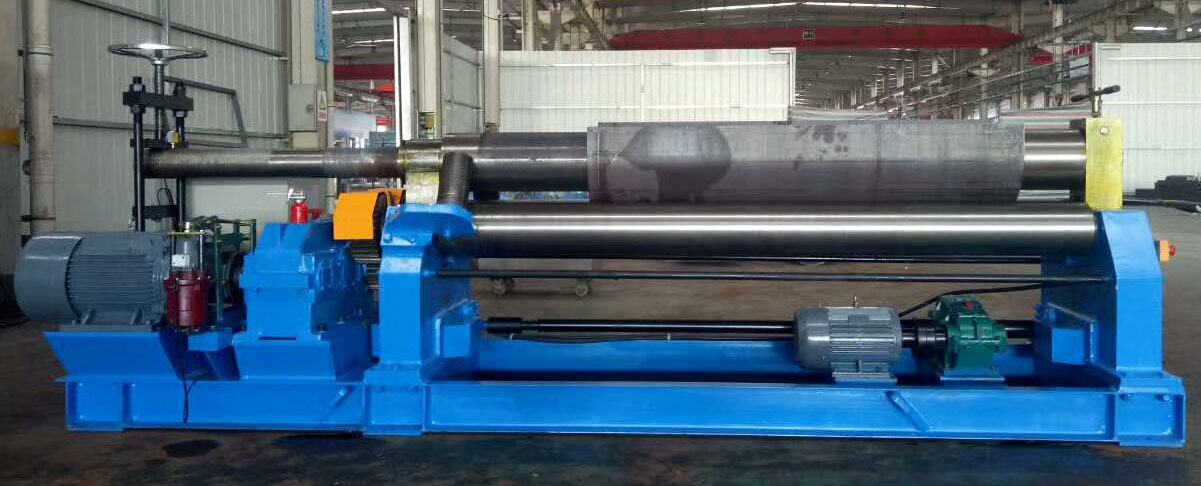W11-12x2000機(jī)械對(duì)稱式三輥卷板機(jī)是全機(jī)械式三彎板機(jī)。 三個(gè)滾筒全部固定,像金字塔一樣放置。