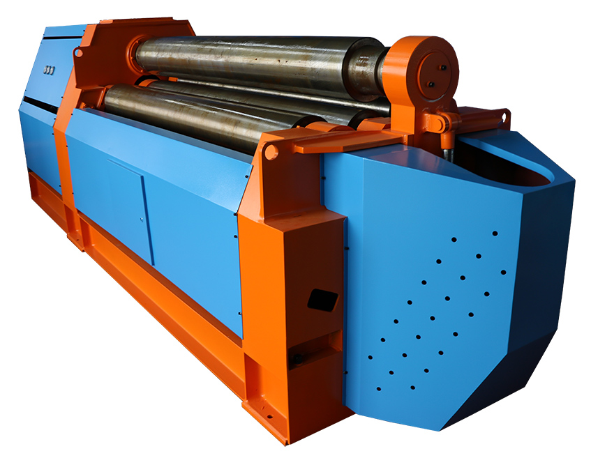 T4-20T3000W Plate Bending Machine is a type of double pinch plate bending machine. Each of the rollers is separate driven. Rollers rectilinear slide ways coated with antifriction material, no maintenance, suit to heavy duty loading, smooth and stable positioning. Spherical roller bearings are equipped on the rollers. All of the rollers in alloyed steel are induction hardening and heat treatment. All of the rollers will be grinded and polished after induction hardening treatment.